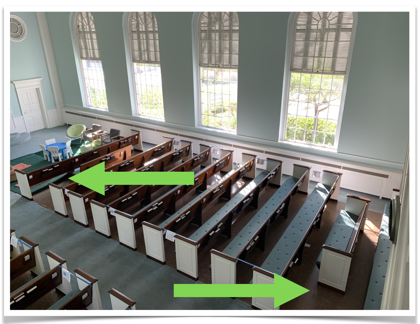 • There are varying areas in the church sanctuary with wheelchair access (see photo below)